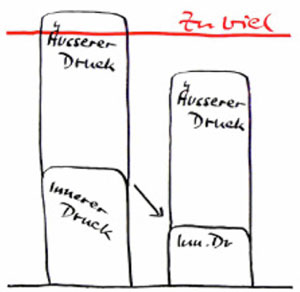 Druck kommt aber nicht nur von außen, sondern wir stehen auch unter innerem Druck. Je mehr innerer Druck vorhanden ist, desto weniger Druck vertragen wir von außen. Wenn es uns gelingt, den inneren Druck abzubauen, plagt uns der äußere Druck viel weniger.