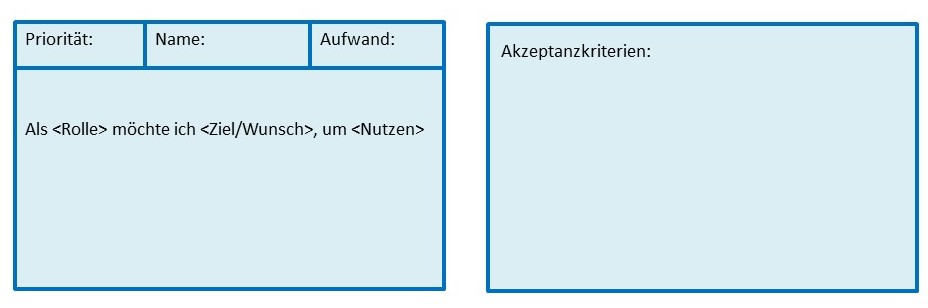 Und so sieht dieses Schema aus: "Als <Benutzerrolle> will ich <das Ziel>, sodass <Grund für das Ziel>." |