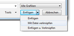Öffnen Sie hierfür einfach den Befehl Grafik einfügen und klicken Sie im Zwischenfenster nicht auf "Einfügen", sondern über die Drop-Down-Funktion auf "Mit Datei verknüpfen" (Bild 3). Wichtig: Dieses Vorgehen funktioniert nur, wenn aktualisierte Versionen des Bildes unter dem gleichen Pfad mit dem gleichen Dateinamen abgespeichert werden.