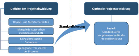 Die betriebliche Praxis bei der Projektabwicklung in kleinen und mittelständischen Unternehmen (KMU), speziell im Bereich des kundenspezifischen Maschinen- und Anlagenbaus, zeigt große Optimierungspotenziale auf. Dies bestätigten Kontakte und Projektpartner der Professur Fabrikplanung und Fabrikbetrieb der TU Chemnitz sowie Literaturquellen (siehe Müller 2006, Gizanis 2006, Schuh 2006, Ulrich 2007, Wagner 2007). Die Auftragsabwicklung ist noch zu wenig automatisiert. So erfolgen z.B. die Umwandlung von Lastenhefte in Pflichtenhefte sowie die Angebotserstellung in vielen Unternehmen manuell. Außerdem sind die Prozesse noch nicht transparent genug, Auftragnehmer und ‑geber sprechen sich zu wenig ab und es fehlt eine gemeinsame Datenbasis, die eine Wiederverwendung von bereits vorhandenem Wissen ermöglichen würde. Die Folge sind Informationsverluste während der Auftragsabwicklung, eine erhöhte Fehleranfälligkeit und ressourcenraubende Mehrfacharbeiten. Um diese Probleme zu lösen, ist es notwendig, die Auftragsabwicklungsprozesse zu standardisieren und zu automatisieren. (Siehe auch Reinhold 2008, Hagen 2008, Müller 2007, Gansauge 2007, Birn 2006).