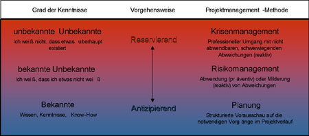Bild 1: Zusammenhang zwischen Kenntnisgrad, Vorgehensweise und Projektmanagement-Methode.