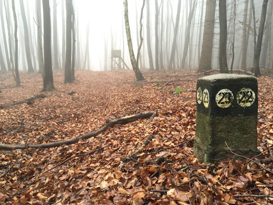 Bild 1: Ein Wegstein gibt auf einer langen Wanderung Orientierung (© Karen Schmidt).