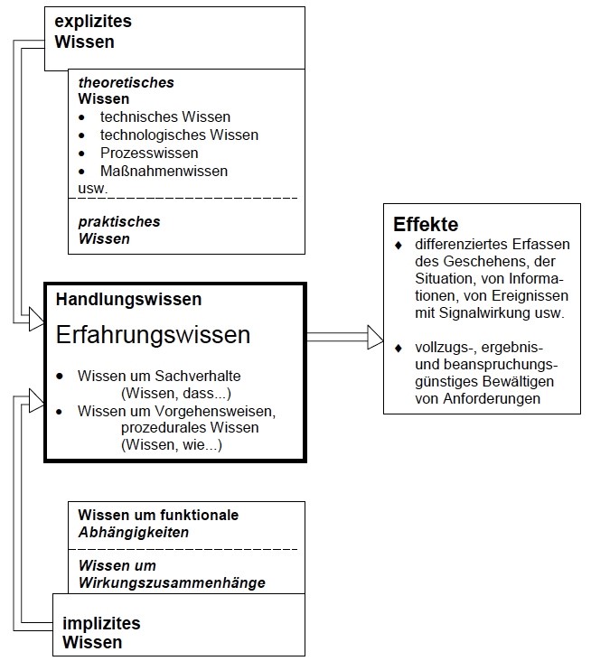 Erfahrungswissen ist Wissen um Sachverhalte und Vorgehensweisen. Es besteht aus explizitem, uns bewusstem Wissen und implizitem, d.h. aus uns nicht oder nur teilweise bewusstem Wissen (Plath, 2002).