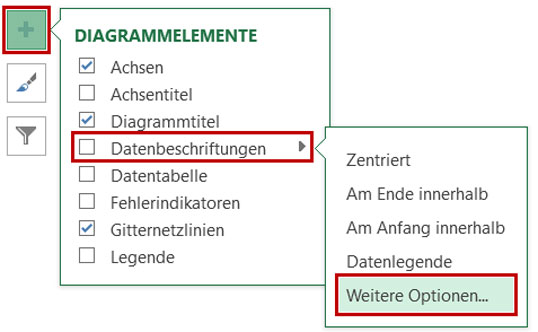 Der Informationsgehalt eines Excel-Diagramms lässt sich oft verbessern, wenn Sie zusätzliche Daten anzeigen lassen, die üblicherweise beim Anlegen eines Diagramms gar nicht vorgesehen sind. Besonders nützlich sind z.B. ergänzende Datenbeschriftungen, die Informationen auf den Punkt bringen oder ein dynamisch erzeugter Diagrammtitel, der die Aussage des Diagramms besser erklärt.