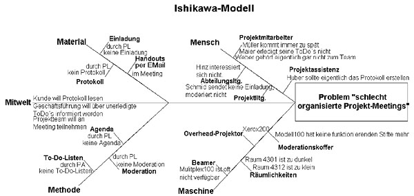 Bild 1: Das Ishkawa-Modell am Beispiel"schlecht organisierte Projektmeetings".