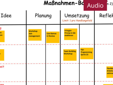In ihrem Beitrag "Die Teamentwicklung mit Kanban transparent und agil gestalten" beschreiben sie, wie Projektteams mithilfe eines geeigneten Modells und Kanban ihre Teamentwicklung selbst in die Hand nehmen. Besonders beeindruckt hat mich dabei, wie nach und nach Transparenz zu Maßnahmen und Fortschritt auch über die Teamgrenzen hinweg entstand.