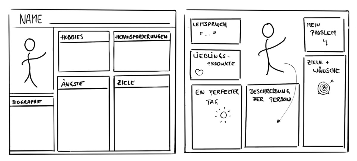 • Eine oder mehrere Beschreibungen fiktiver Personen, die eine Benutzergruppe mit ihren Wünschen, Erwartungen und Befürchtungen repräsentieren
