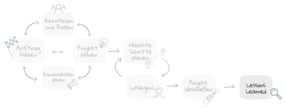 Mit diesem Leitfaden können Sie einfach loslegen! Er führt Sie durch die wichtigsten Schritte des Projektmanagements von der Auftragsklärung bis zur Abnahme.