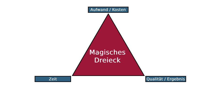 Das Magische Dreieck setzt aus traditioneller Sicht Zeit, Aufwand und Leistungsumfang als die zentralen Inhalte des Projektmanagements in Beziehung zueinander. Es soll vermitteln, dass diese zentralen Faktoren nur in Abhängigkeit voneinander variiert werden können.