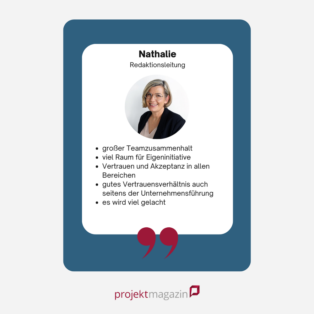 Das projektmagazin wurde bereits zum dritten Mal in Folge von Great Place to Work® auf Grundlage einer anonymen Mitarbeiterbefragung als „Attraktiver Arbeitgeber“ zertifiziert. Zusätzlich wurden wir 2026 in zwei Wettbewerben ausgezeichnet: als „Beste Arbeitgeber im kleinen Mittelstand 2026“ sowie bei „Bayerns Beste Arbeitgeber 2026“.