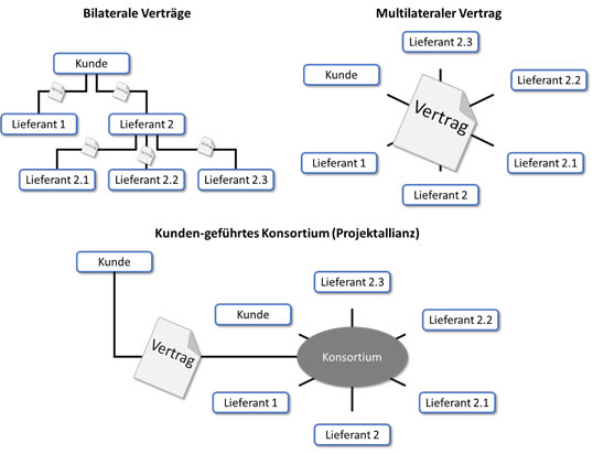 Bild 2: Bilaterale Verträge, multilateraler Vertrag und vom Kunden geführtes Konsortium