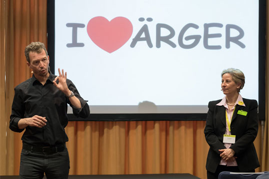 Dazu wurden im Stream 3 – Souverän trotz Komplexität verschiedene Aspekte des "Faktor Mensch" im komplexen Umfeld des Projektmanagements beleuchtet. Hier gefiel uns besonders, dass es den Referenten jeweils gelang, durch das Schildern typischer Alltagssituationen und -probleme die Teilnehmer gut abzuholen und mit ihren Lösungen jedem Teilnehmer etwas mit auf den Weg gaben, wie z.B. Christian Bremer mit "Meine Minute", einer Entspannungsübung, die zu mehr innerer Ruhe und Gelassenheit führt (siehe dazu auch Bremers Fachbeitrag "Mit aktiver Gelassenheit dem Stress trotzen").