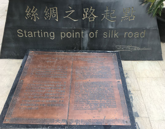 Bild 2: Plakette in Xi'an zur Seidenstraße. Berühmt ist die alte Kaiserstadt auch für die Terrakotta-Armee aus dem Mausoleum Qin Shihuangdis.