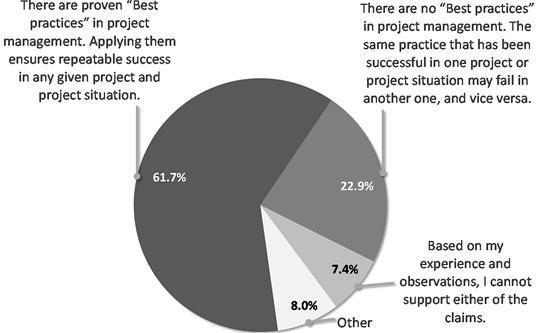 Bild 1: Antworten auf die Frage, ob es "Best Practices" im Projektmanagement gibt. Die drei Antwortmöglichkeiten waren vorgegeben.