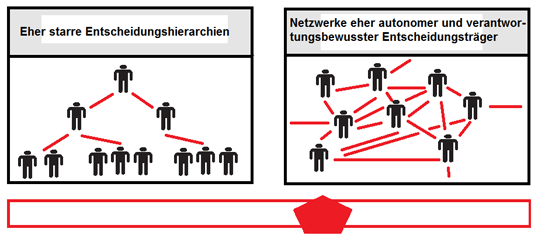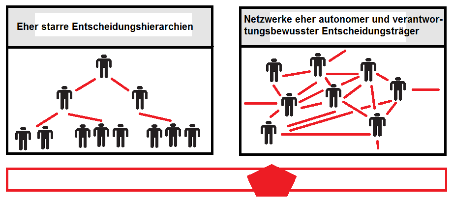 Die Wahrheit dürfte beruhigender Weise einmal mehr irgendwo in der Mitte liegen, oder anders ausgedrückt: Beide Einwürfe sind natürlich richtig! Wer sich in der Vergangenheit als starrer und unbelehrbar hierarchisch orientierter Entscheider zeigte, wird auch in Zukunft nicht unbedingt dazu beitragen, dass sich sein Unternehmen an die ständig wechselnden und sich beschleunigenden Kontextbedingungen anpasst.