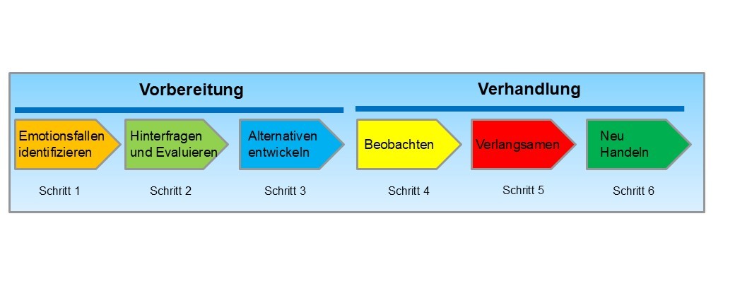 Die Methode "Emotional Souverän Verhandeln" führt in sechs Schritten zu mehr emotionaler Souveränität in Verhandlungen und anderen Gesprächssituationen.