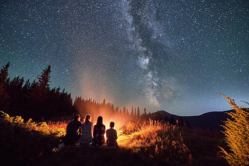Für eine entspannte und inspirierende Atmosphäre können Sie den Raum im Stil einer Lagerfeuerszenerie dekorieren. Hierfür können Sie z.B. Kerzen oder Teelichter, Fotos oder Plakate von Lagerfeuern, Naturmaterialien, Stoffe in Naturtönen usw. verwenden. Wenn Sie, wie in Beispiel 1, den Workshop in einer geeigneten Umgebung durchführen, können Sie natürlich auch deren Möglichkeiten entsprechend einsetzen – bis hin zu echten Lagerfeuern.