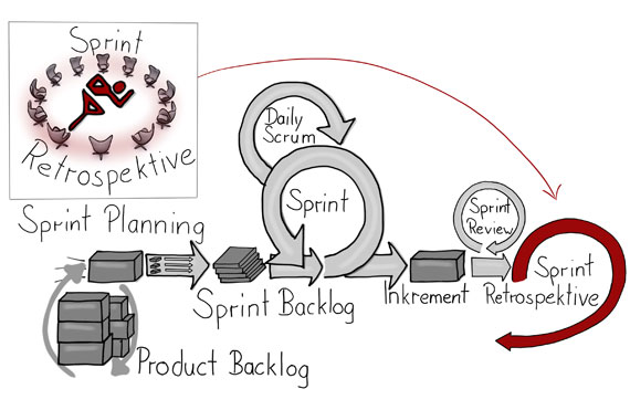 Bild 1: Visualisierung der Sprint Retrospektive im Scrum-Prozess.