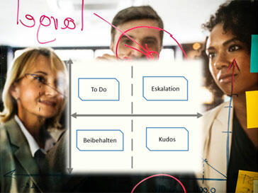 Notieren Sie die Rückmeldungen und stellen Sie diese dem gesamten Team über Ihre Moderationstafel, Pinnwand oder das entsprechende Medium zur Verfügung.