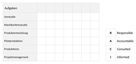 Die Matrix stellt sicher, dass alle Projektinhalte eindeutig einer verantwortlichen Person zugeteilt werden. Entscheidungen können dadurch zügig eingefordert und getroffen werden.
