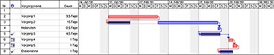 | 13. Ermittlung der Anfangs-/Endtermine der Aktivitäten | Balken/Netzplan |