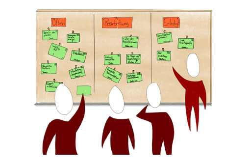 Steuern Sie aktiv Ihr Projekt und sorgen Sie dafür, dass die Arbeiten koordiniert ablaufen! Skalieren Sie die Methode auch für Teilprojekte, Sprints, Epics oder User Storys! |