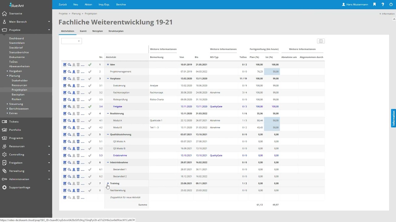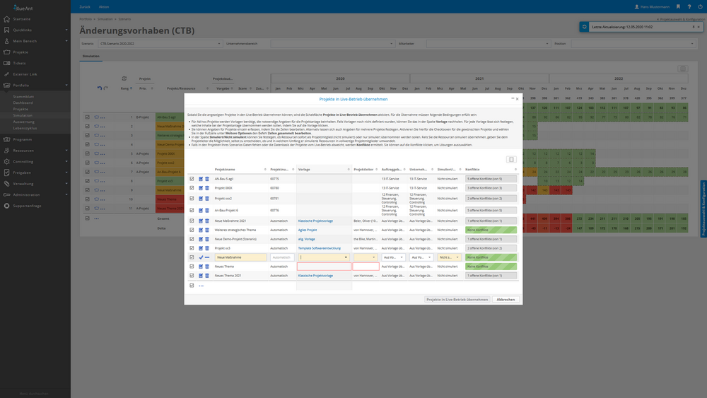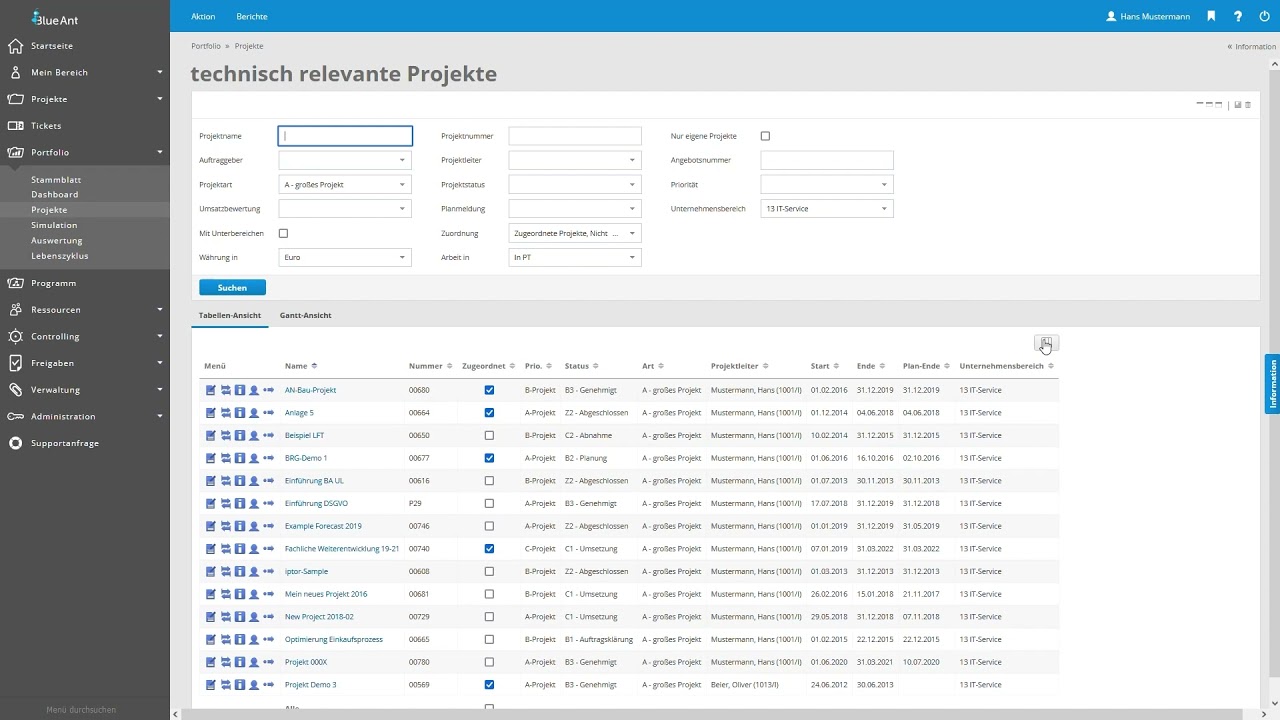 Blue Ant professionalisiert das Multiprojektmanagement durch das effiziente Zusammenspiel von Einzelprojekt-, Ressourcen- und Portfoliomanagement. Alle Projekte, Programme und Ressourcen lassen sich unternehmensweit und in Echtzeit steuern – transparent, skalierbar und DSGVO-konform in der EU gehostet.