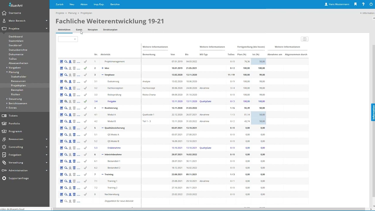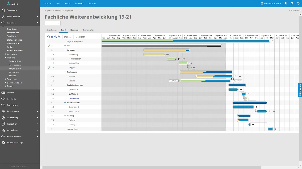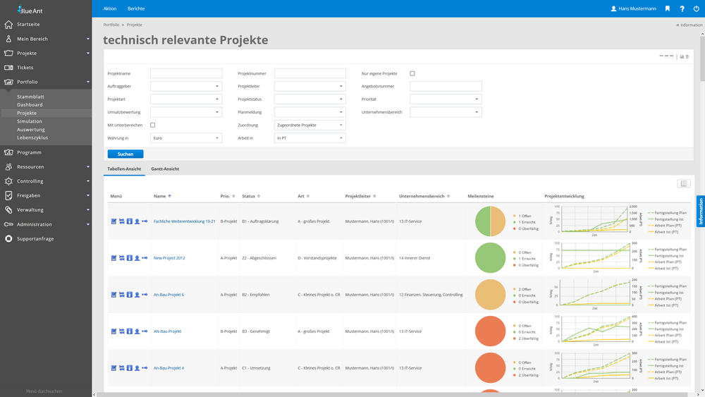 Von der Statusübersicht bis zur detaillierten Planung schafft Blue Ant die Grundlage für nachhaltigen Projekterfolg, produktive Teams und effiziente Steuerung – in Unternehmen jeder Größe und Branche.