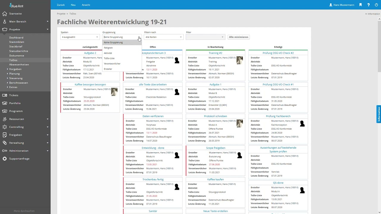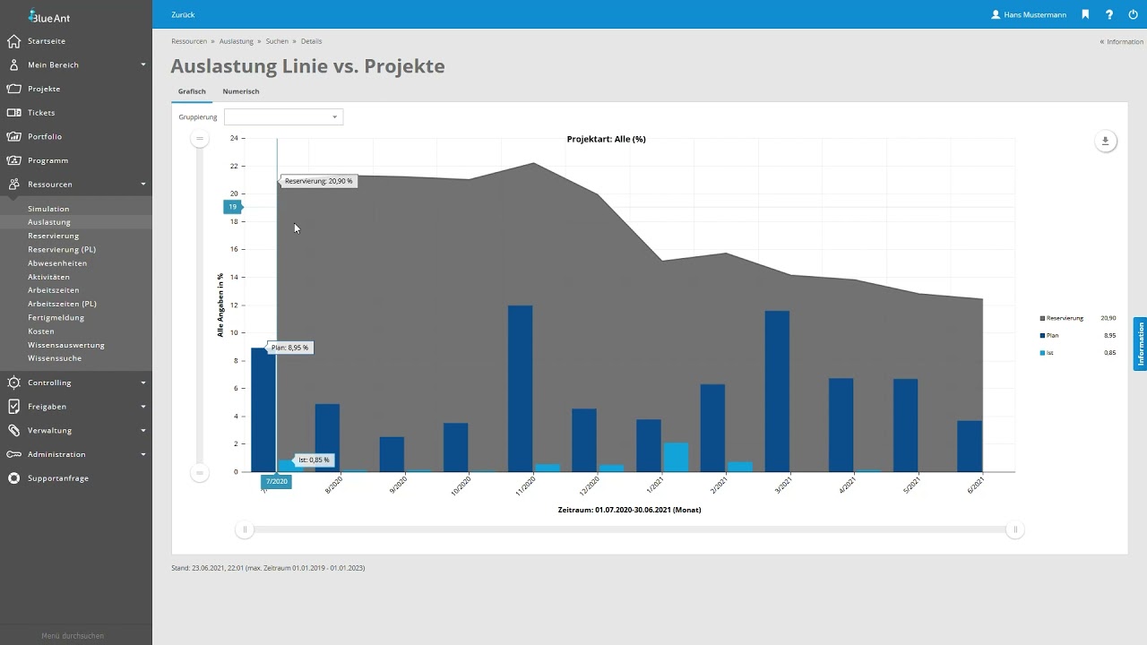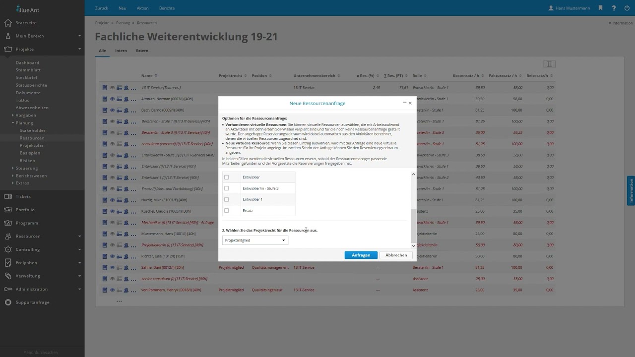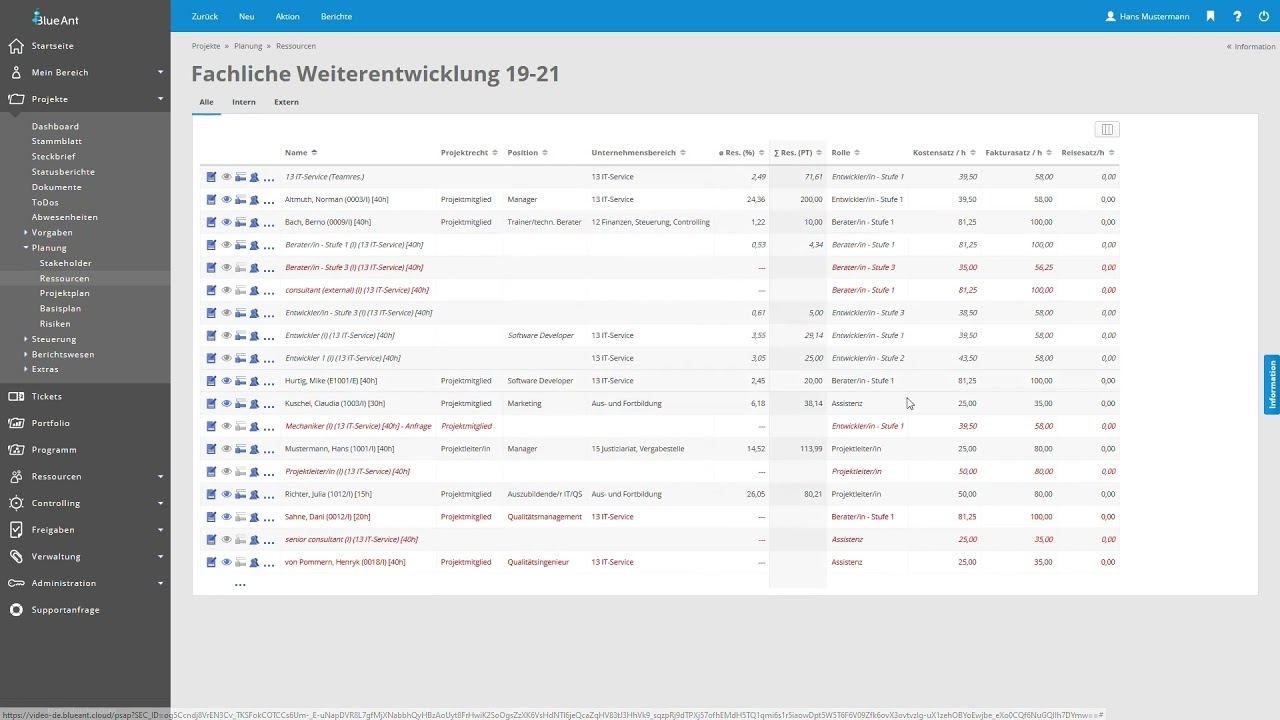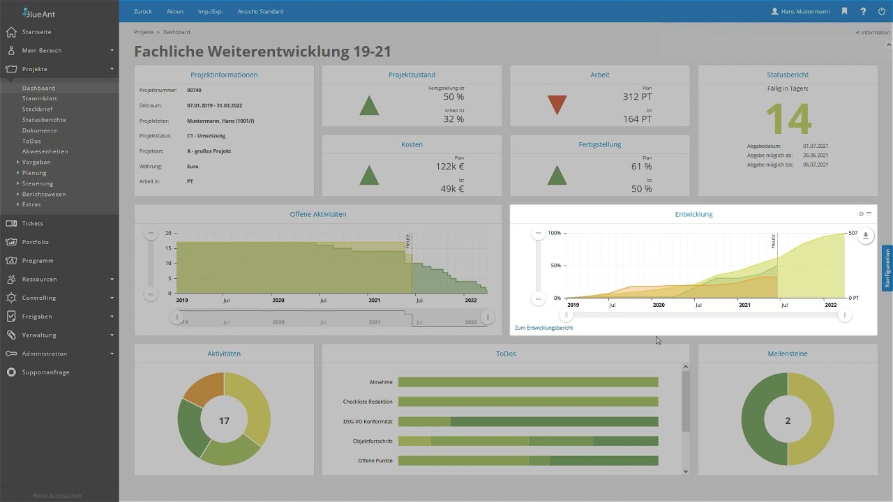 Ob klassisch, agil oder hybrid: Blue Ant unterstützt PMOs, Fachabteilungen und Projektverantwortliche mit durchgängigen Prozessen und klarer Übersicht. Dienstleistungsprojekte können ebenso abgebildet werden wie interne Vorhaben – inklusive flankierender Prozesse wie Zeiterfassung, Reisekostenabrechnung und Weiterberechnung.