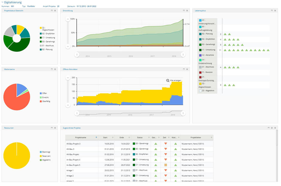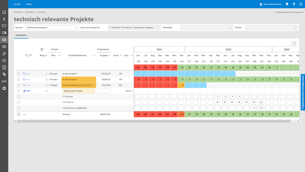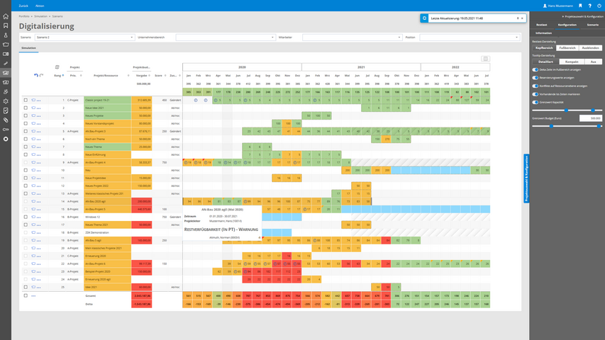 Die integrierte Plattform bietet valide Informationen auf Basis tatsächlich laufender oder geplanter Projekte sowie aktueller Ressourcennutzung. So gewinnen Sie Klarheit über Kapazitäten, vermeiden Engpässe und treffen fundierte Entscheidungen im gesamten Projektportfolio.