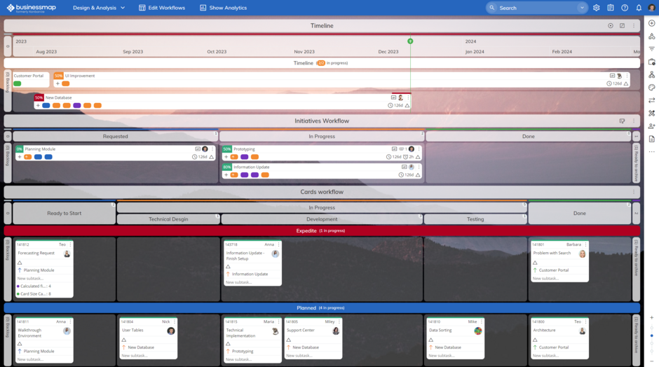 Multi-Projektmanagement-Plattform für ein vollständiges End-to-End-Work-Management. Gewinnen Sie Transparenz über alle Projekte hinweg. Bringen Sie strategische Ziele mit der täglichen Arbeit in Einklang.