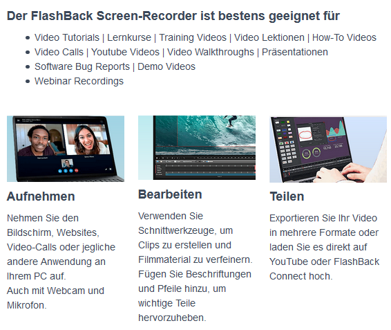 Mit FlashBack 5 Screenrecorder - www.bb-flashback.de - erstellen Sie Bildschirmaufzeichnungen am PC und bearbeiten diese einfach. Den Videos kann man Audio, Text hinzufügen und diese einfach teilen. Für Präsentationen, Demos, Tutorials, eLearning...