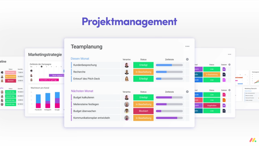 monday.com ist ein leistungsstarkes Projektmanagement- und Productivity-Tool, das Teams aus allen Bereichen bei der Planung, Ausführung, Nachverfolgung und Steuerung ihrer Projekte und Tasks unterstützt – ob im Büro, zuhause oder unterwegs.