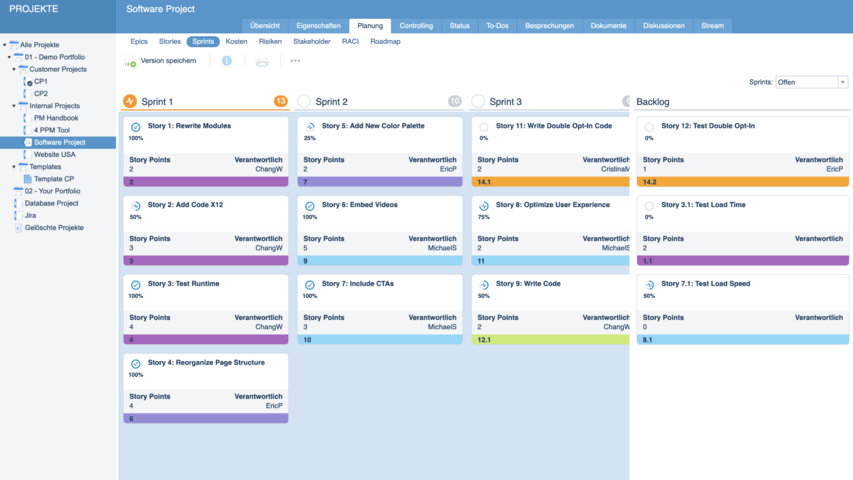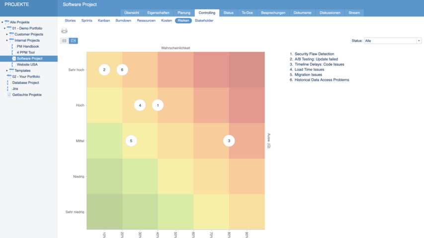 Einfacher und übersichtlicher Überblick über Projektportfolios