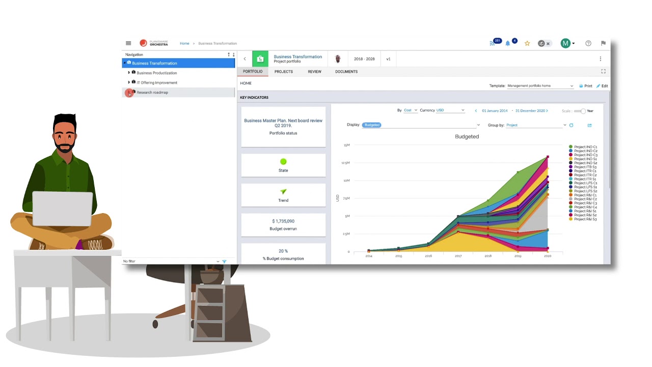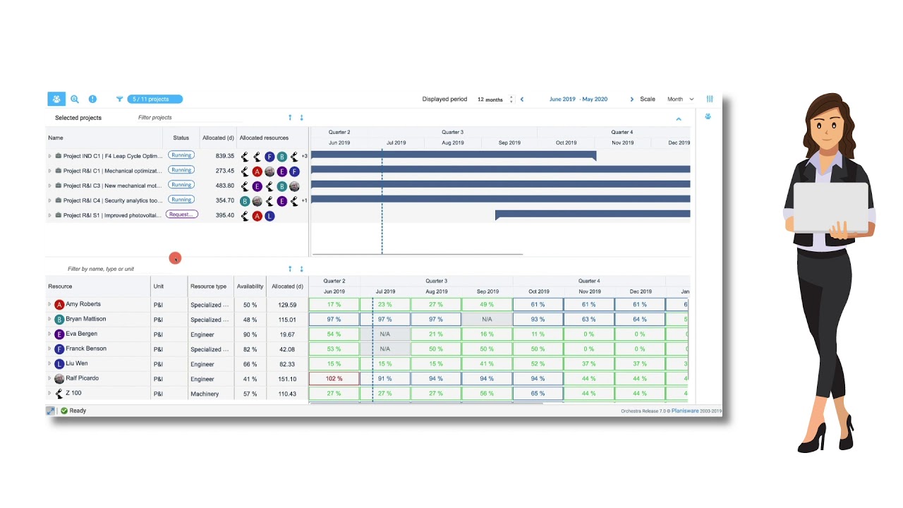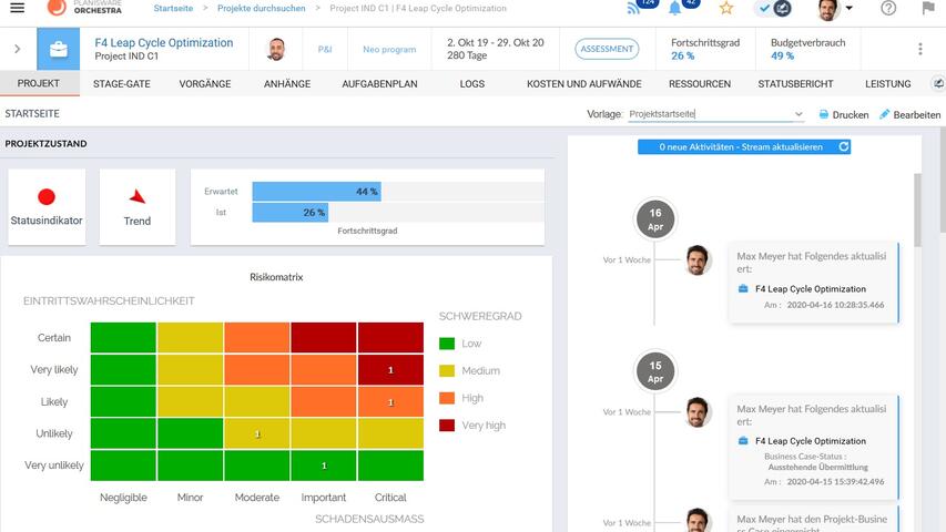 Mit Planisware Orchestra behalten Sie die volle Kontrolle über Ihr Projektportfolio. Holen Sie sich Ihre Projektberichte in Echtzeit, vereinfachen Sie Ihre strategische Planung und optimieren Sie den Einsatz Ihrer Ressourcen. Planisware Orchestra sorgt für die reibungslose Zusammenarbeit aller Projektbeteiligte und liefert die passenden Werkzeuge, um Projekte durch den kompletten Lebenszyklus zu steuern.