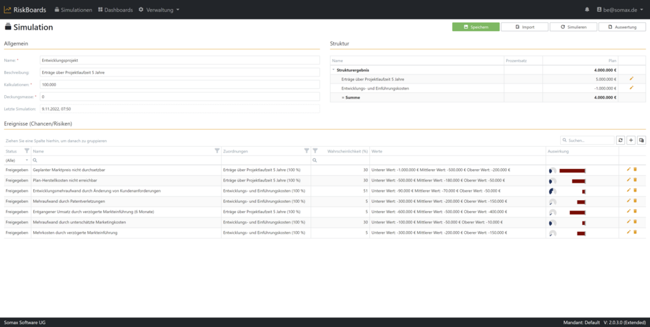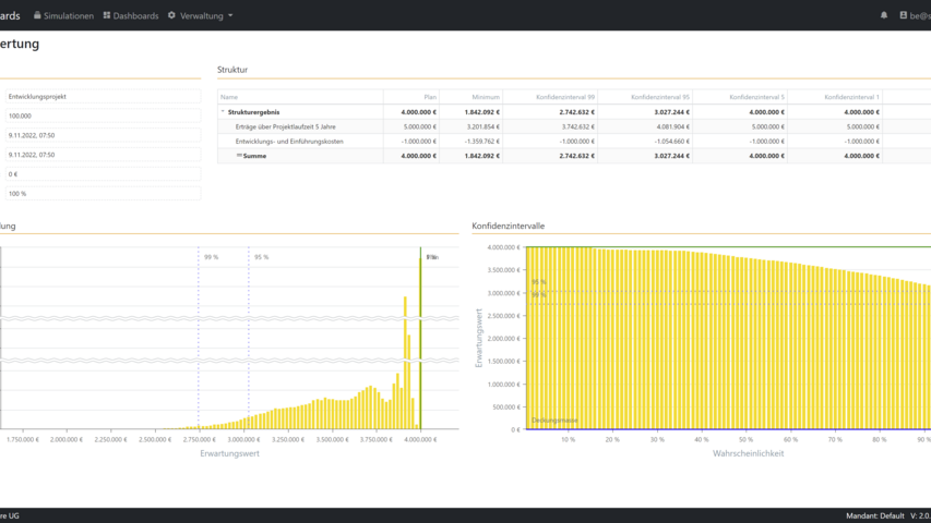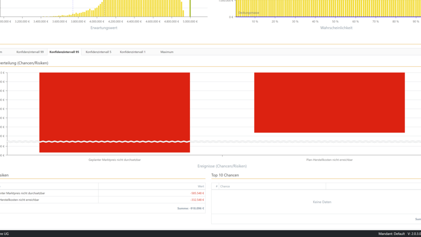 RiskBoards bietet softwaregestützte Risikosimulation und Risikoaggregation mit Hilfe der Monte-Carlo-Methode.