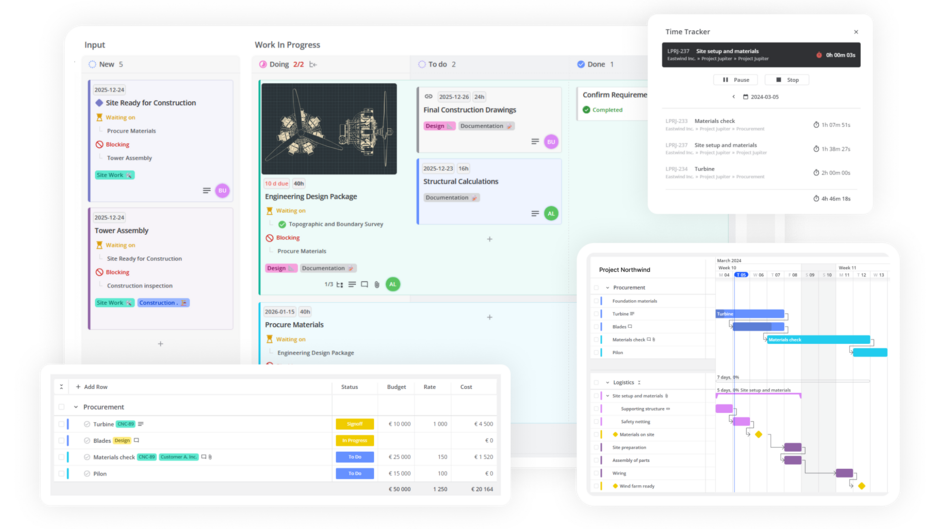 Steigern Sie die Effizienz Ihres Teams mit einem visuellen Projektmanagement-Tool: Kanbantafel für Unternehmen mit nahtloser Zeiterfassung.Verfügbar in der Cloud und für Ihren offline Unternehmensserver.Anwendungsoberfläche auf Deutsch verfügbar!