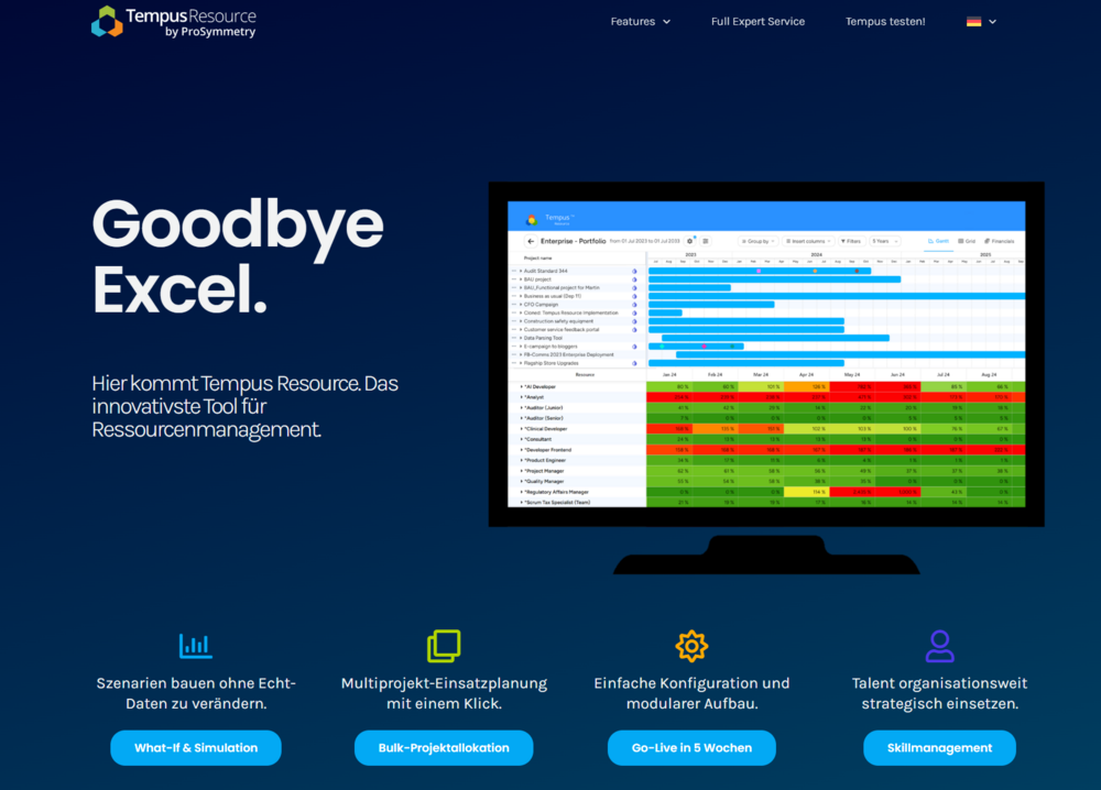 Vergleich pm-smart · PLANTA project · InLoox für Outlook · Microsoft Project · Tempus Resource