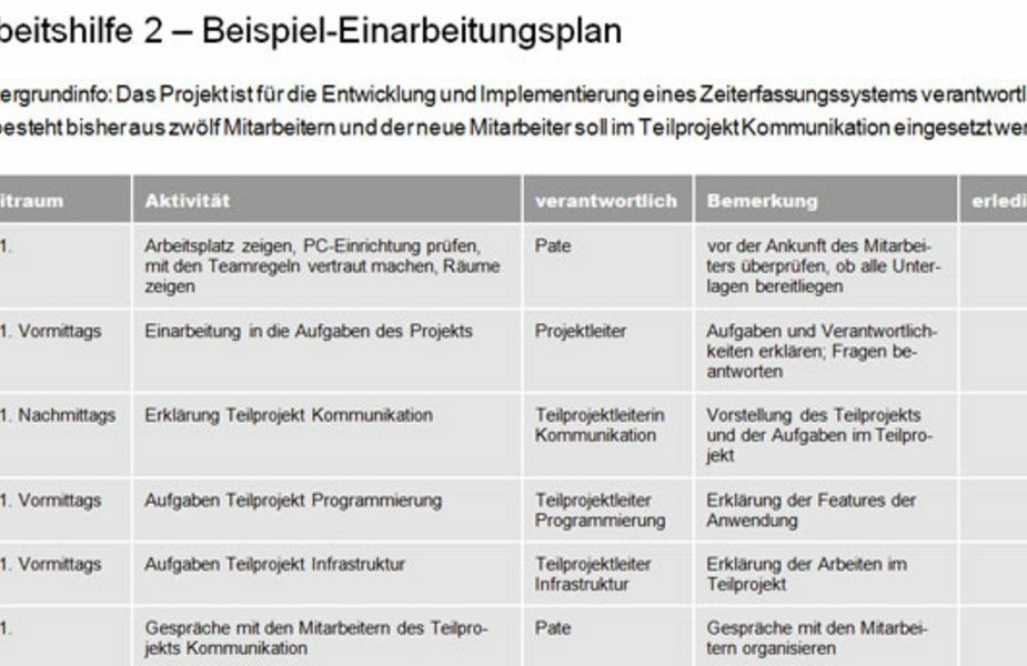 Infrastruktur-Checkliste und Einarbeitungsplan für neue Mitarbeitende | Vorlage Word