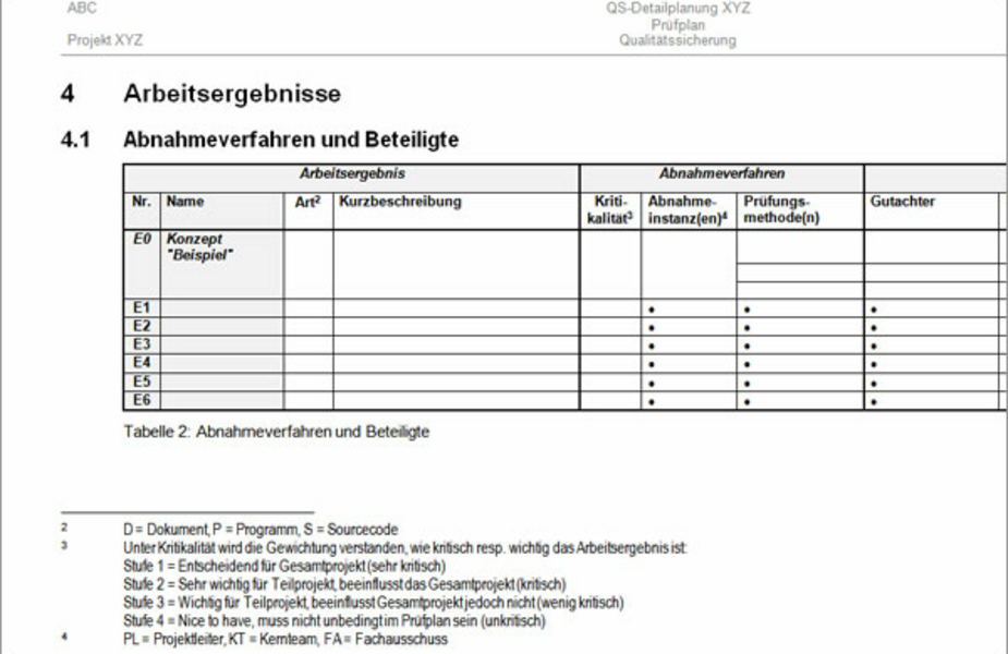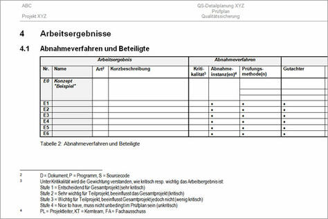 Im Prüfplan werden die Dokumente und Quelltexte aufgeführt, die mittels eines Reviews, eines Walk Throughs oder einer Code Inspection geprüft werden sollen. Grundvoraussetzung dafür ist, dass der Projektleiter weiß, welche Dokumente bzw. Arbeitsergebnisse in einem Projekt entstehen.