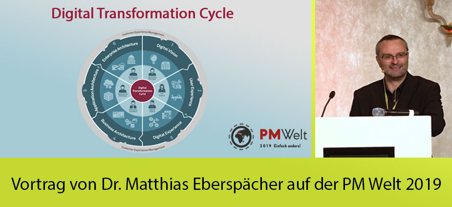 Die Digitale Transformation ist in aller Munde, aber wie kann das konkrete Vorgehen in einem Projekt der Digitalen Transformation aussehen? Matthias Eberspächer präsentiert ein hybrides Vorgehensmodell für die Design-Phase der Digitalen Transformation: Der Digital Transformation Cycle besteht aus sechs Disziplinen, die iterativ durchlaufen werden, und schließt die Lücke zwischen der initialen Ideenfindungs- und der abschließenden Umsetzungs-Phase.
